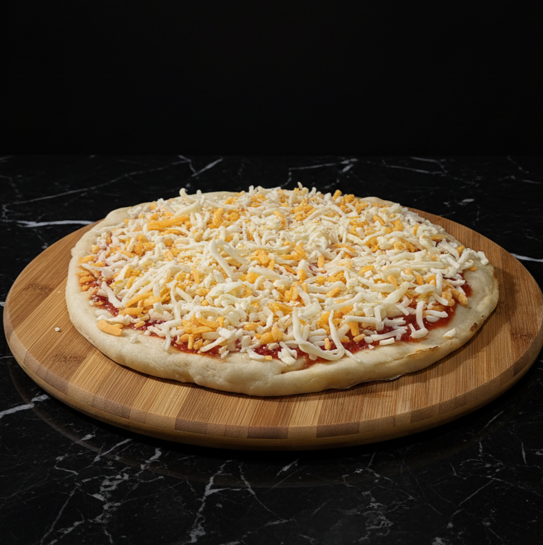 Four cheese pizza with a white crust