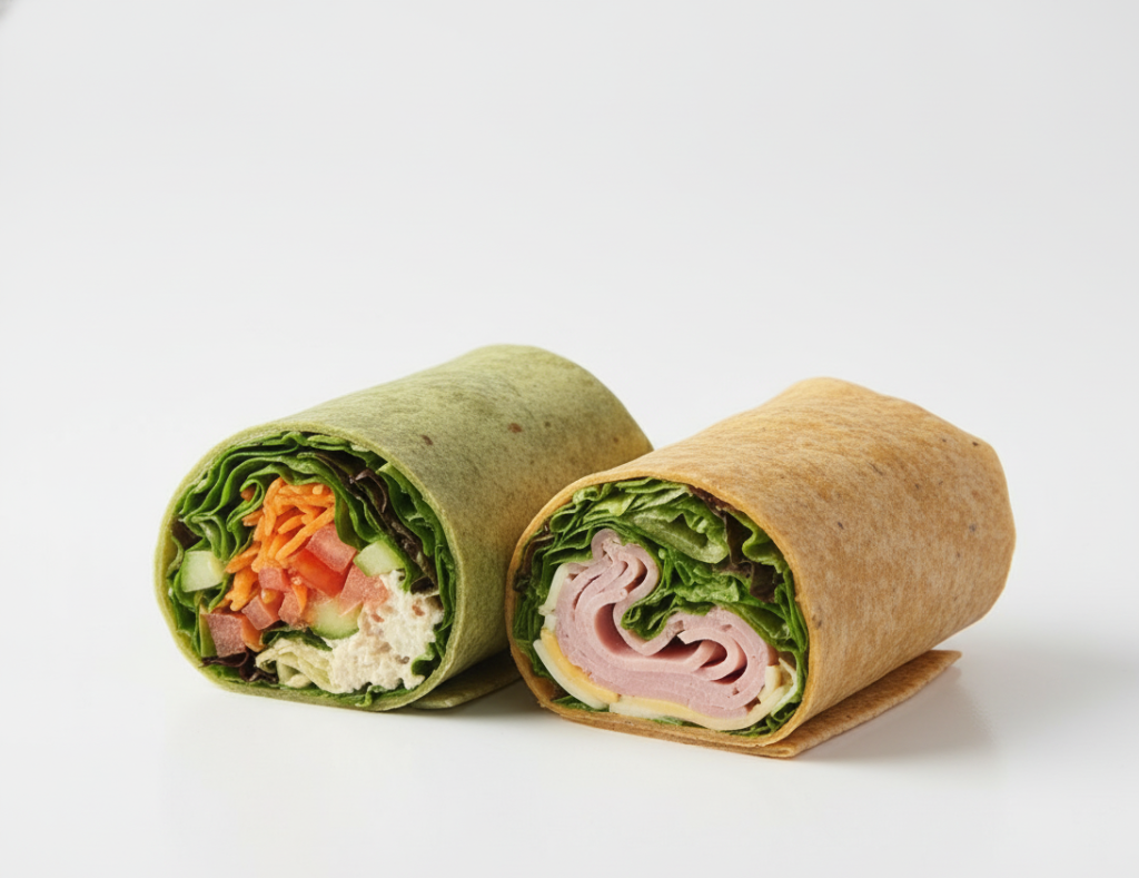 $8.79 (plus tax) each whole wrap (the photo shows 2 different halves, 2 halves make a whole wrap)