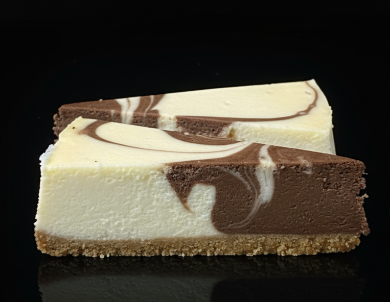 Creamy New York cheesecake with chocolate swirled in