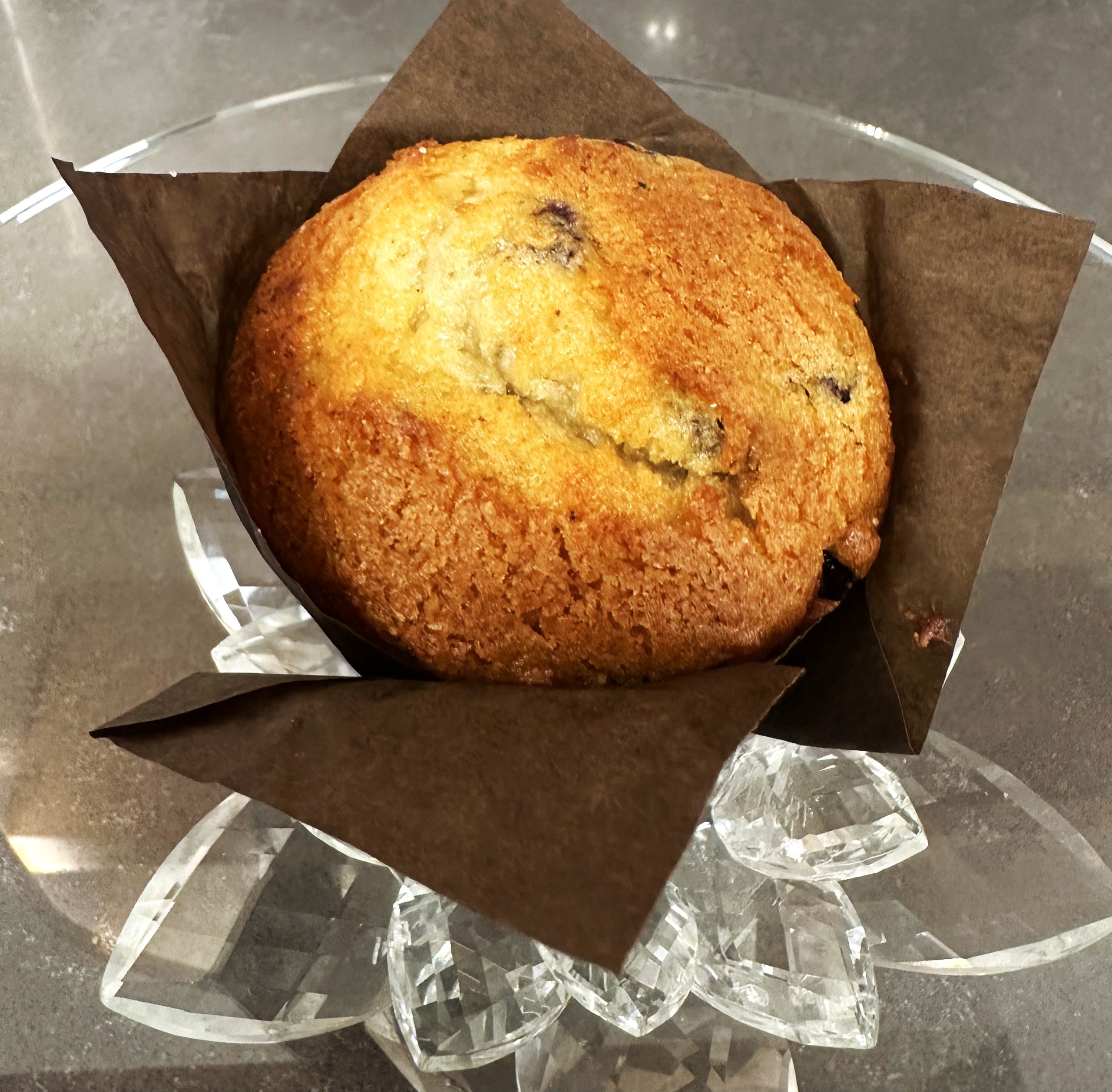 A fluffy and moist muffin made with fresh blueberries and yogurt