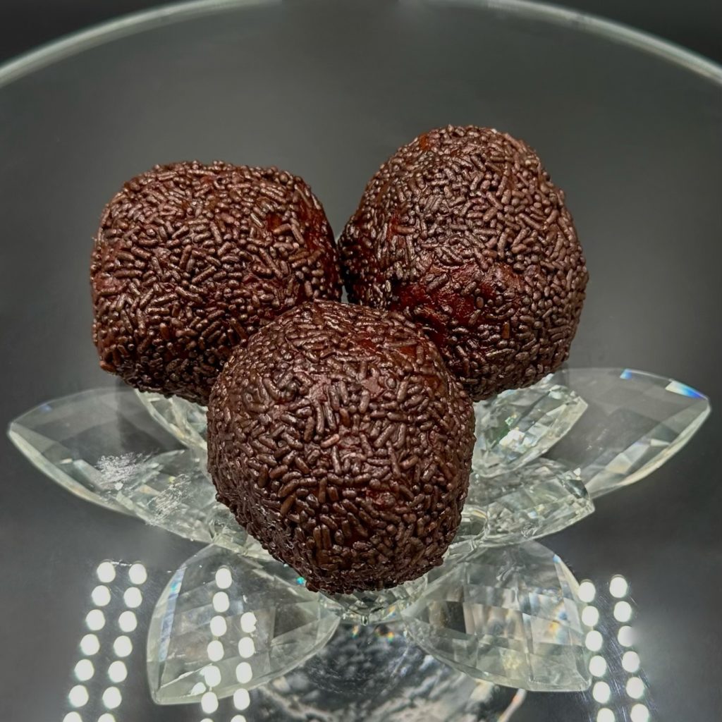A delicious chocolaty rum ball rolled in chocolate sprinkles (made using real rum)