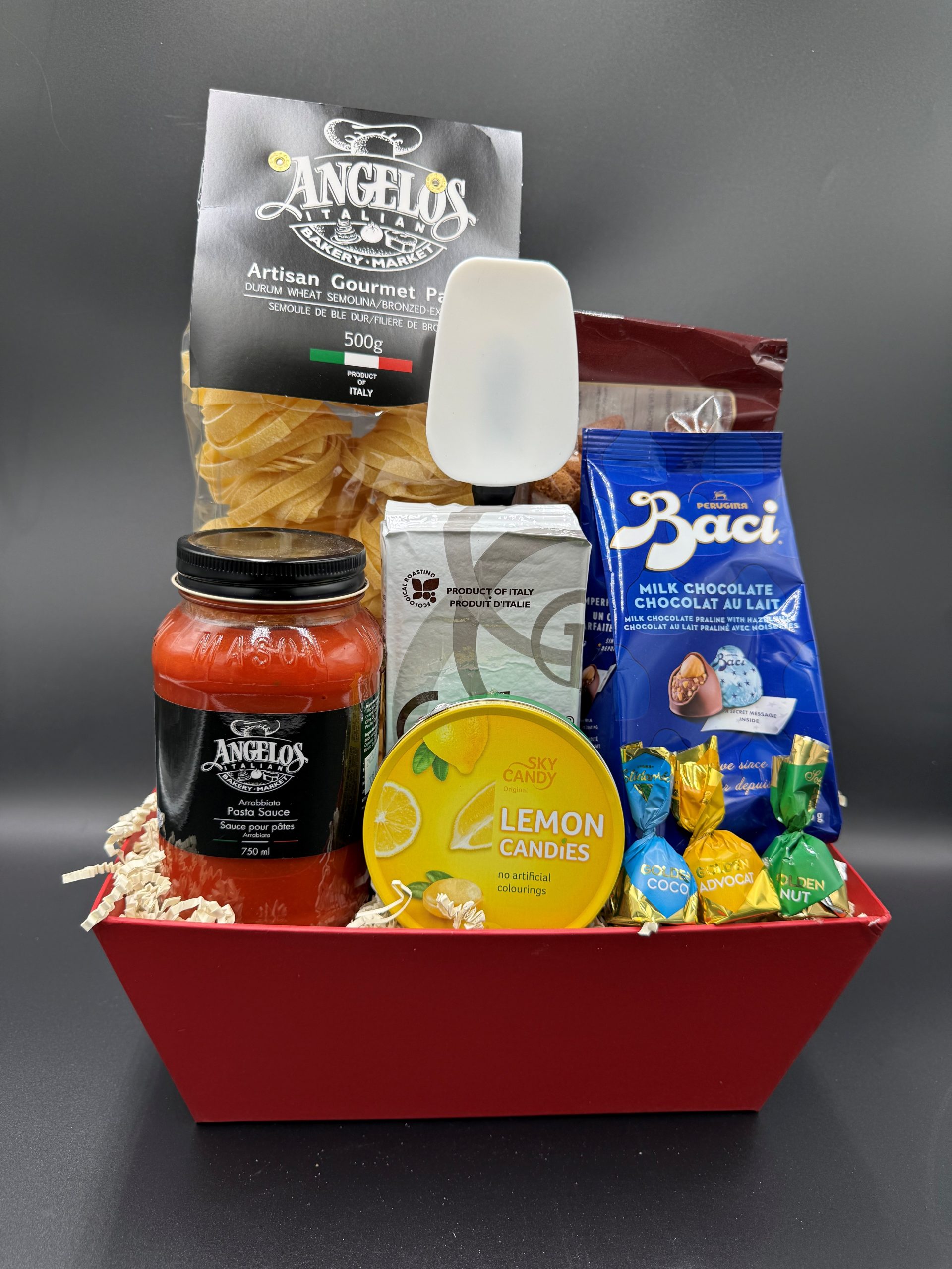 One of the best ways to experience Angelo’s without actually traveling there, is through our custom-designed gift baskets. Each basket is designed to reflect the personal taste of even the most particular food lover.