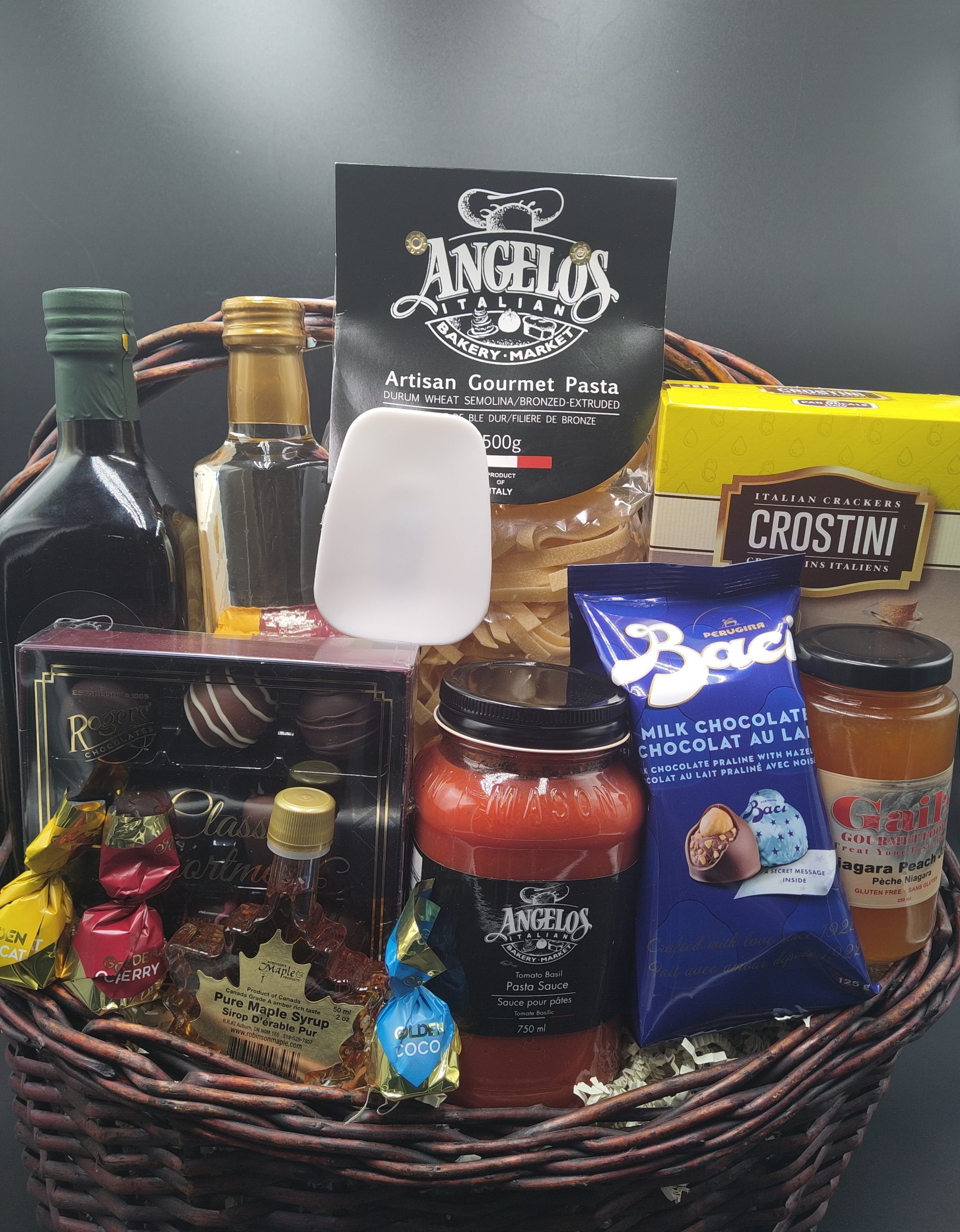 One of the best ways to experience Angelo’s without actually traveling there, is through our custom-designed gift baskets. Each basket is designed to reflect the personal taste of even the most particular food lover.